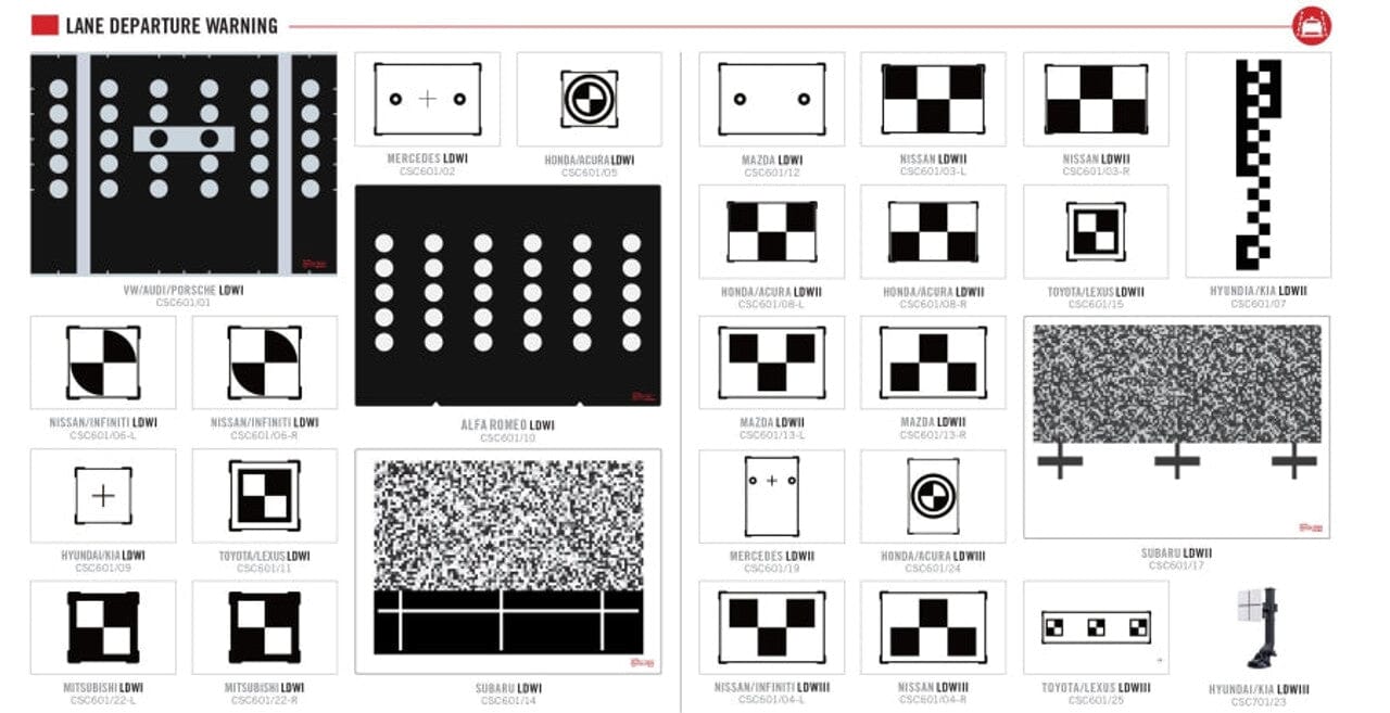 • LDW Patterns/Targets for Alpha Romeo, Honda, VW, Mercedes, Hyundai/Kia, Nissan, Infiniti, Mazda, Mitsubishi, Mazda, Subaru, Toyota/Lexus