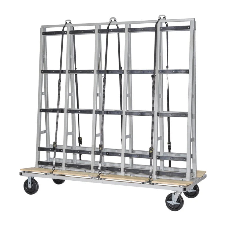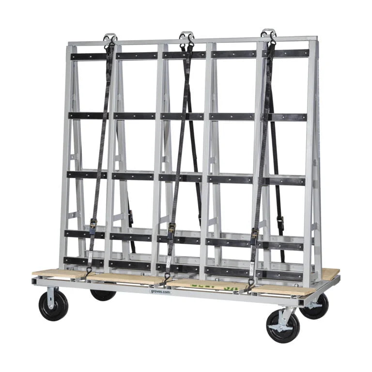 Moving heavy items like glass panels and marble slabs can be an hassle in any warehouse or distribution facility. Groves offers Glass Carts that are designed for stability and easy movement. These carts have plywood bases and rubber mounted horizontally on the upright supports
