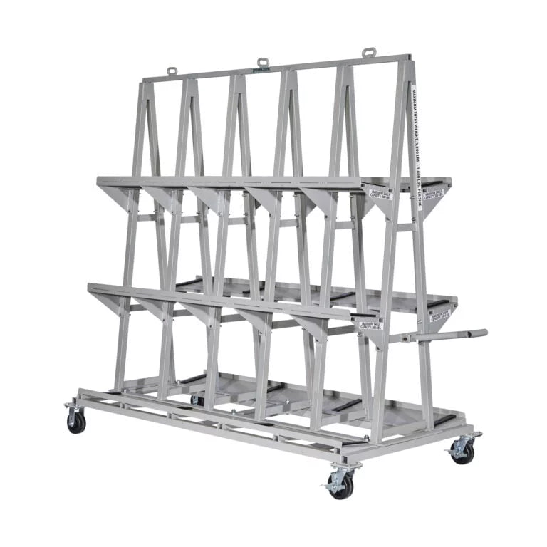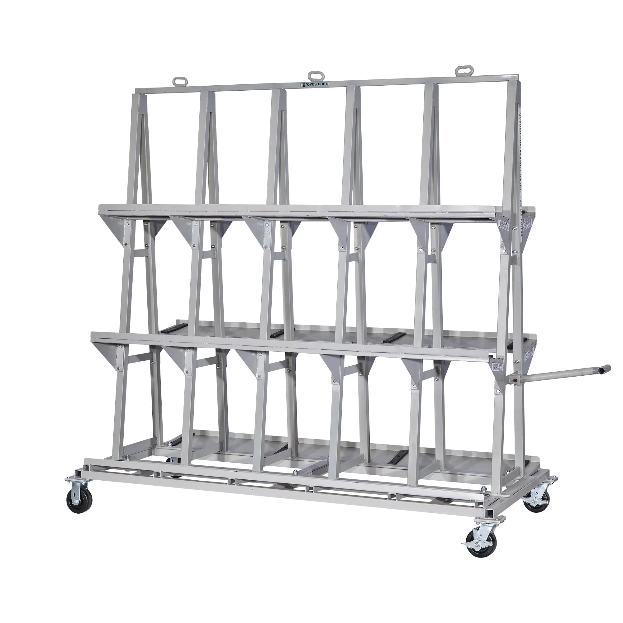 Designed specifically for handling and moving stone, Heavy Duty Backsplash Cart by Groves is rugged and built to last even in extreme shop conditions. This cart has six shelf levels to help in moving cut backsplash around the shop.