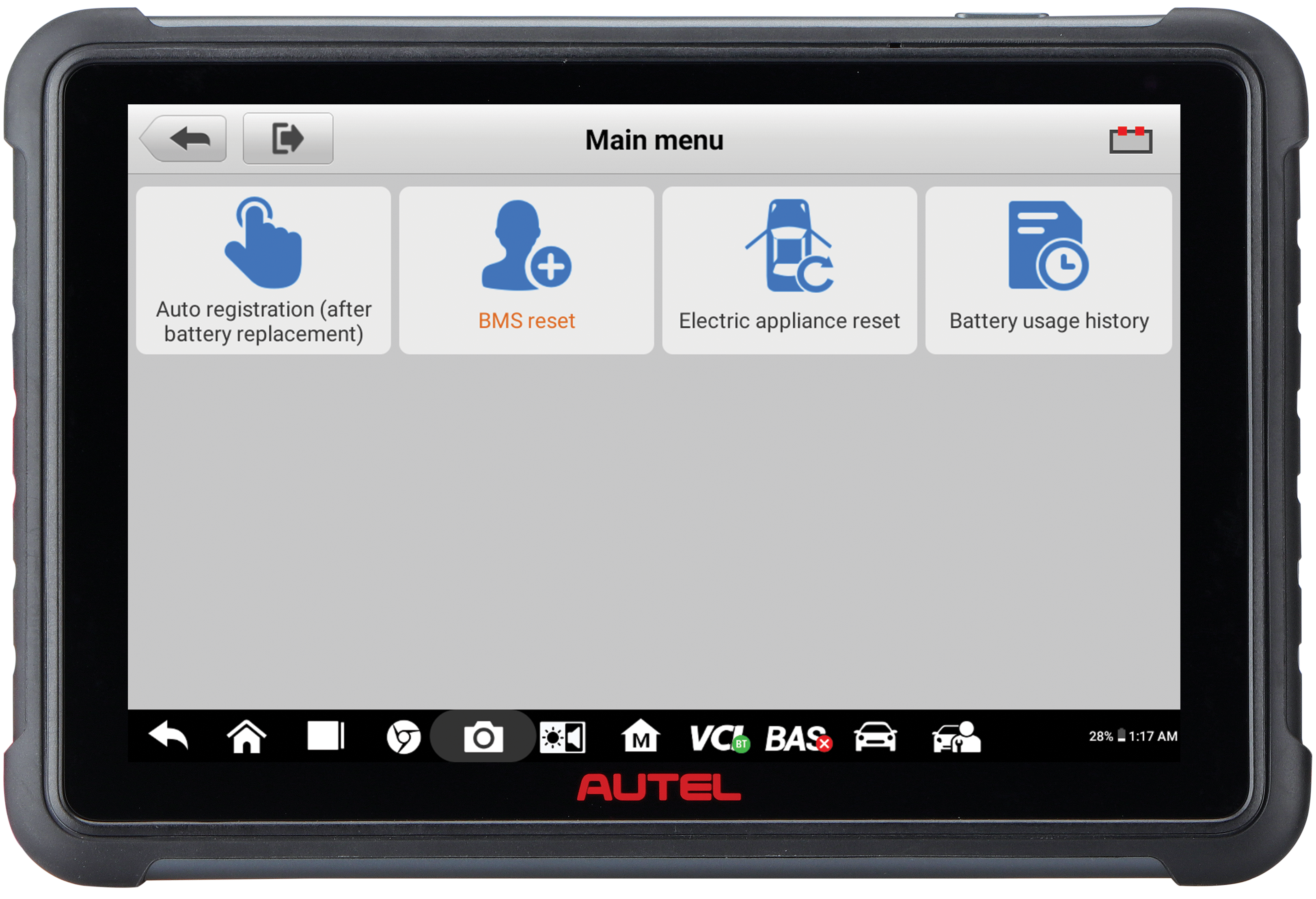 The MaxiBAS BT609 wireless battery and diagnostics system applies Adaptive Conductance, an advanced battery analysis method that produces a more accurate examination of the battery’s cold cranking ability and reserve capacity, vital to determining a battery’s true health. The 7-inch Android touchscreen tablet can display a quick health status of the existing battery, register a new battery and perform advanced battery and electrical system diagnostics. The BT609’s features include AutoVIN to immediately identify vehicle and battery information and to display graphic instructions for battery positioning and testing. Features service menu. Read/Clear codes on all available vehicle systems and perform common maintenance services. Print or share customized reports via Wi-Fi.