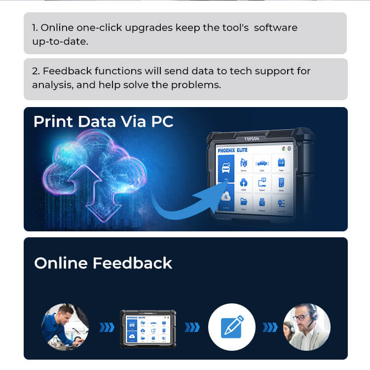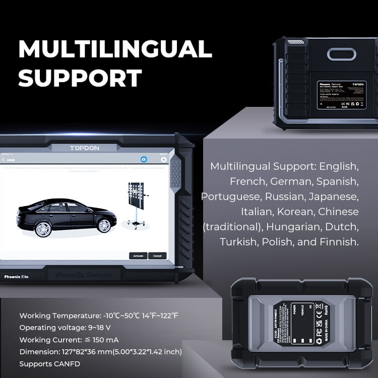 • Vehicle communication is enhanced with most of the latest communication protocols. The Phoenix Elite comes equipped with wireless VCI and CAN-FD capabilities.