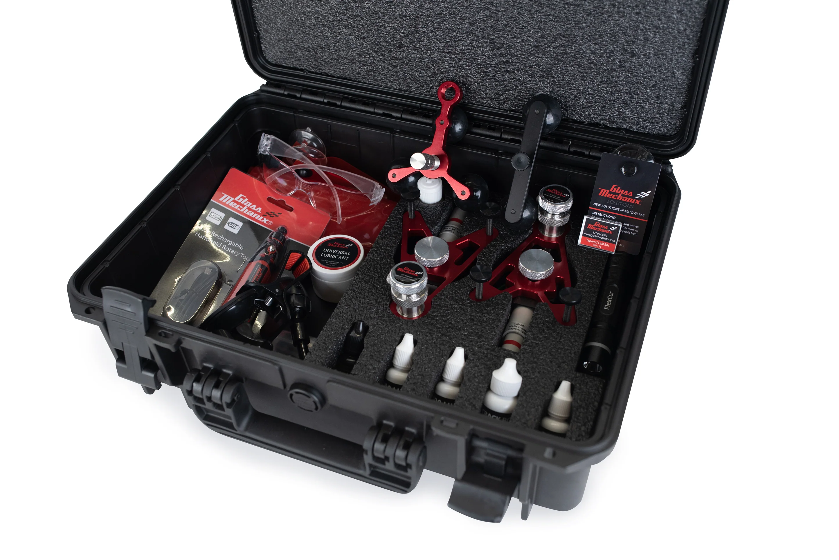 The Daytona Cup Windshield Repair System was designed for businesses focusing on both traditional rock chip repair, as well as crack repair. It not only features two complete Daytona Bridge Assemblies, but also the new Rally Assembly. The Rally is an extremely effective bridge assembly for long crack repair, making the Daytona Cup System the very best for all types of repair needs.