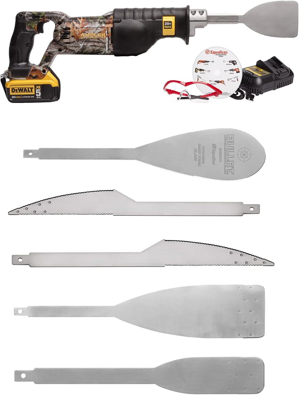 ATV2012-5 Equalizer Ambush Cordless Windshield & Quarter Glass Cut-Out Tool Kit – 20V Li-Ion, 5 Blade Set with HydroBlades, Battery, Charger, & Case – Heavy-Duty Urethane Removal Tool – Made in USA