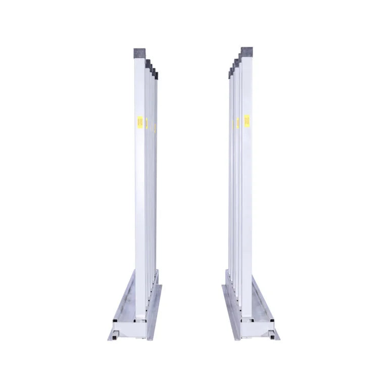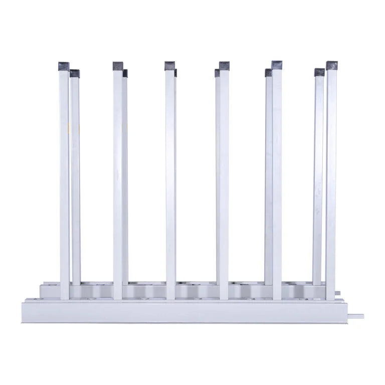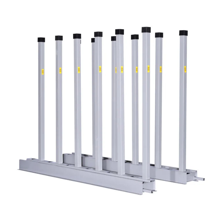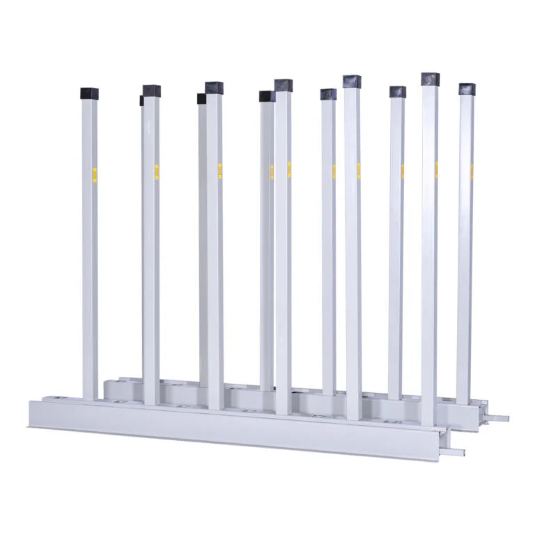 Groves offers this long, heavy-duty bundle rack for jumbo-sized stone bundles. It features 90" rails with slots to hold 2 x 4's, which protect the slab edges and the finish on the rails. The rack is finished with an durable industrial powder coat finish for years of service.