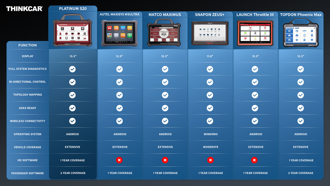 ThinkCar Platinum S20 - 13.3" Full System OBD2 Scanner Tablet with 41 Maintenance Resets Professional Vehicle Diagnostic Car Code Reader Tool