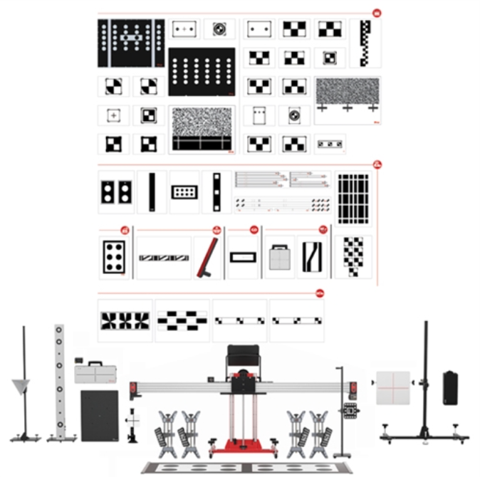 - Targets, patterns and components for LDW, ACC, Lidar, Radar, Night Vision, RCW, Lane Watch and AVM system calibrations