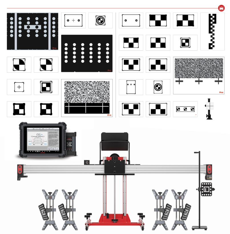 - Targets, patterns and components for LDW, ACC, Lidar, Radar, Night Vision, RCW, Lane Watch and AVM system calibrations