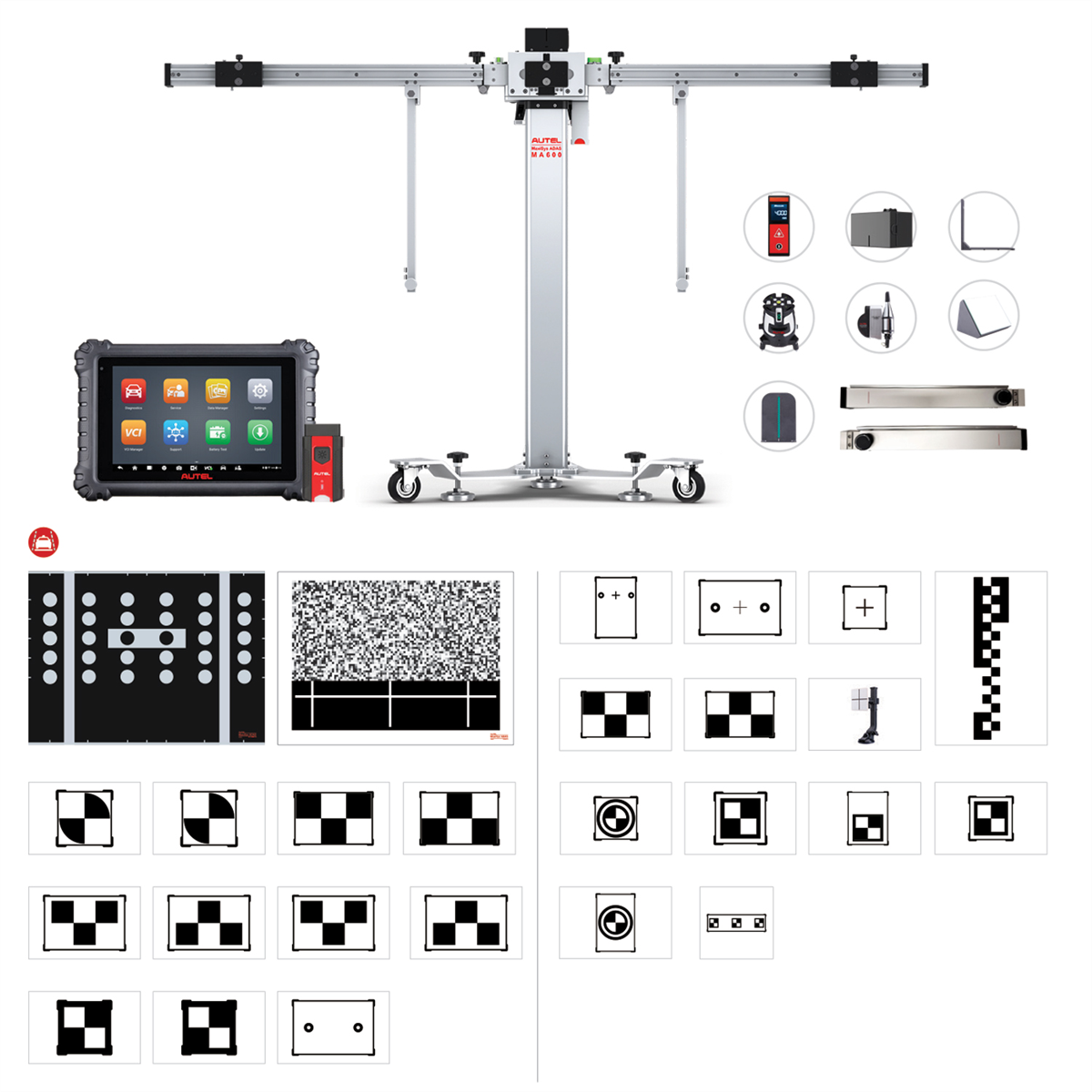• Autel MA600 Mobile ADAS Calibration Frame with crossbar extensions for precise calibrations