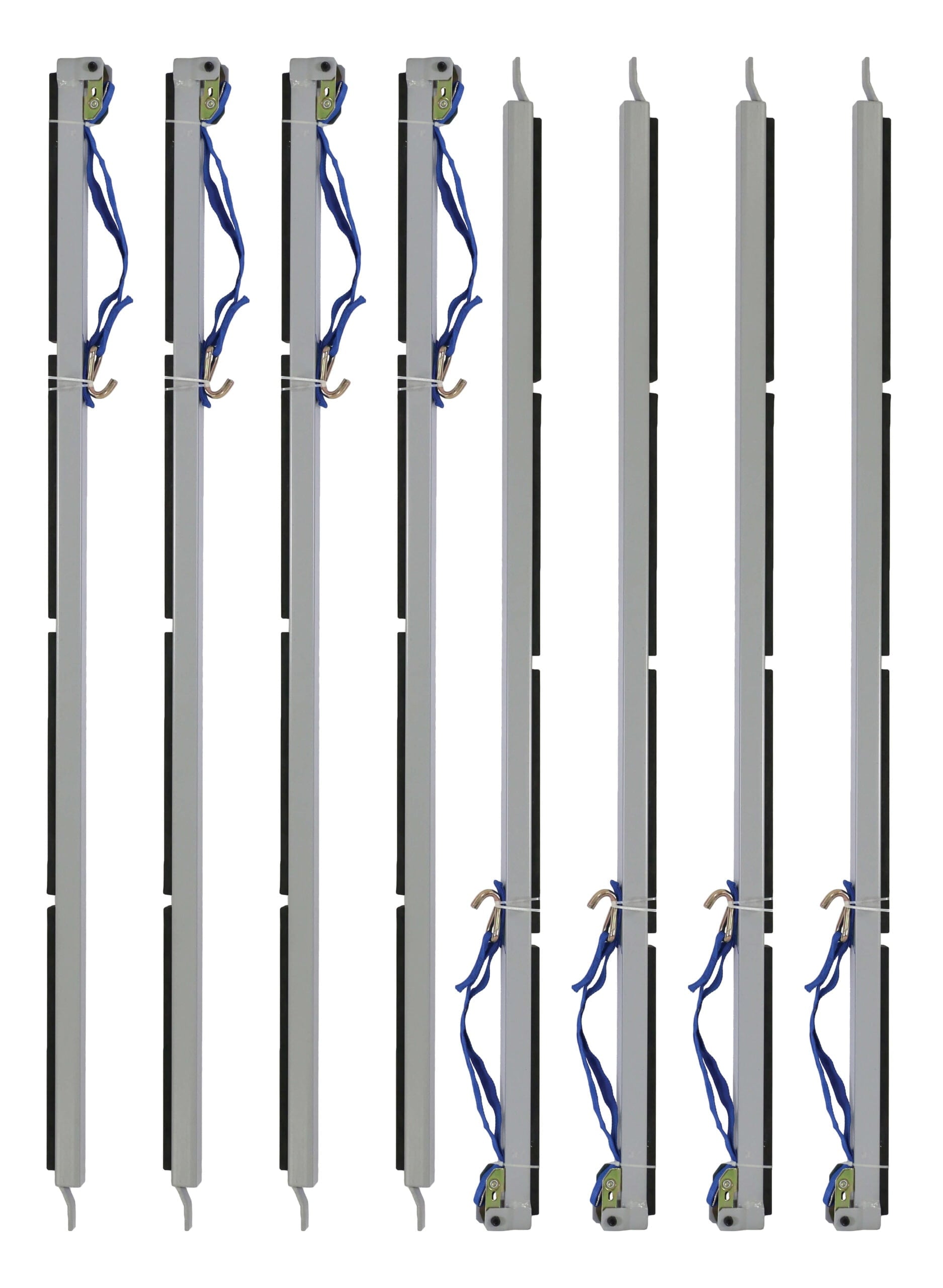 - Hold downs bars feature riveted rubber strips that extend the length of each bar.