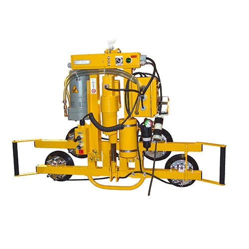 Equipped with powered 90° tilt, sliding vacuum pad mounts and individual vacuum pad shutoffs, this economical vacuum lifter from Wood's Powr-Grip® offers maximum versatility for handling stone and other high-density materials, including those with rough surfaces or irregular shapes.