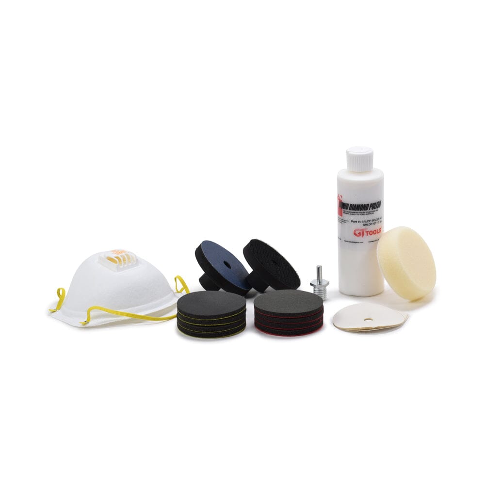 [description] GT Tools® Scratch Magic Plus™ DIY glass scratch repair kit utilizes unique micro-replication discs that allow for glass scratches to be removed in a more efficient and effective way. Designed for multiple scratches, 6 to 8 inches in length and less than .003 of an inches in depth (normally a scratch that you cannot catch your nail in). This product comes with everything you need, excluding a 110v power drill (RPM min. 1500). Remove those unsightly scratches and restore your glass to a new finish! Offered in 3 inch size. [/description]