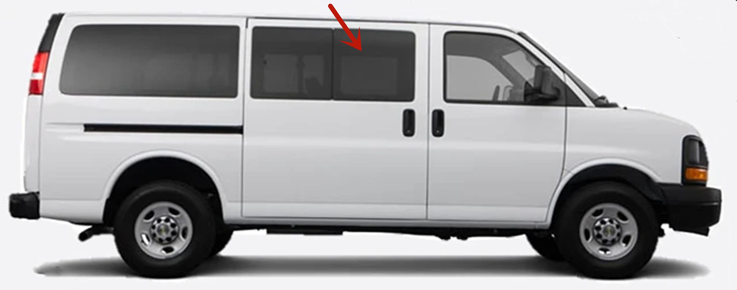 - Glass Location : Right Side, Sliding Cargo Door (first half of the sliding cargo door)