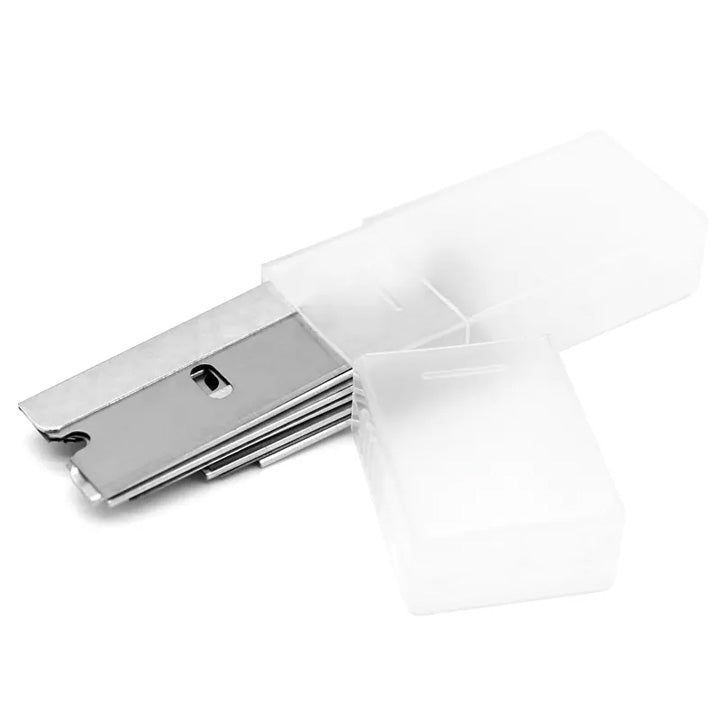 - 【Quick Change Blade】This scrapers set is extra equipped with 10pcs metal blades and 10pcs plastic blades for a long time usage. Manually unscrew the knob, remove and replace the blade with a new one, then tighten the knob. Now you just have easily and successfully changed the blade.
