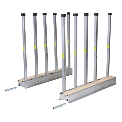 Easily store bundles or slabs in your shop or warehouse with this well-designed Bundle Rack from Groves. It features rails with slots to hold 2 x 4's, which protect the slab edges and the finish on the rails. The unit has square tube posts and rubber post caps to separate bundles and slabs.