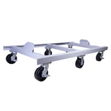 Groves heavy duty transport rack quickly converts from a stationary rack to a rolling cart once placed on the rolling base. This rack includes uprights with rubber padding and a splash caddie inside the frame for convenient splash storage.