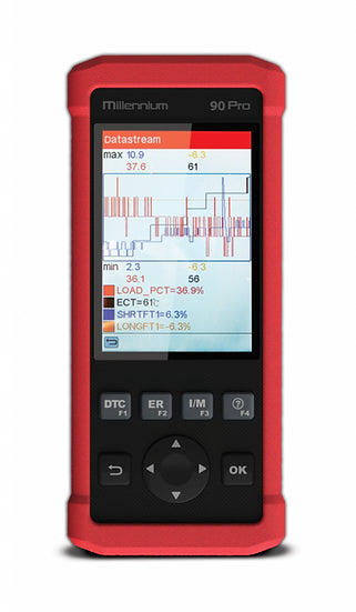 Millennium 90 Pro is a multipurpose code reader. It provides 10 OBDII/EOBD diagnostic modes and the following special functions: oil reset, brake bleeding, EPB, BMS, DPF, SAS reset. In addition, it gives live data stream reading Engine, Auto Transmission, ABS and SRS diagnosis to facilitate all-around car detection Live data...