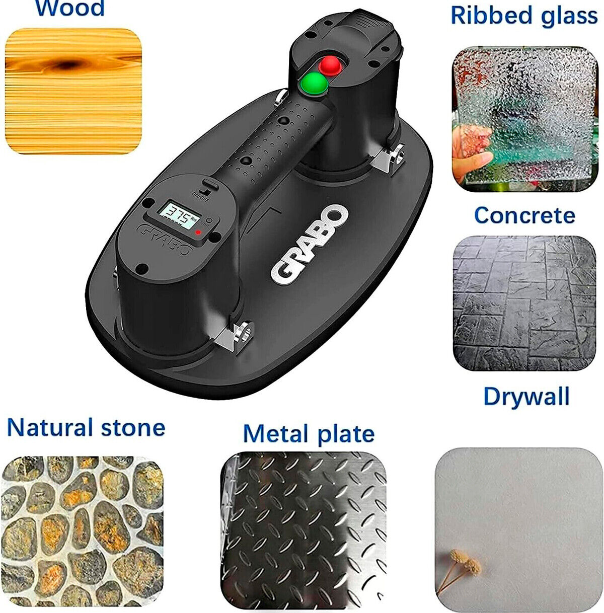 The tool is ergonomically designed to provide better grip and less fatigue when moving heavy objects. The tool is an effective vacuum lifter even for dusty, semi-porous or rough surfaces. The tool works perfectly with glass, wood, ceramic tiles, metals and other materials. Just like the Classic version the powerful vacuum pump and rechargeable battery pack are concealed within the grab handle.