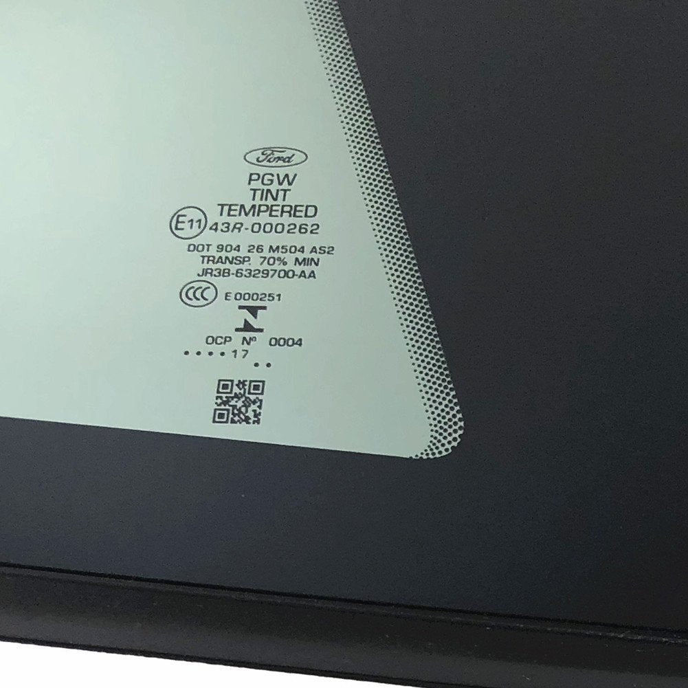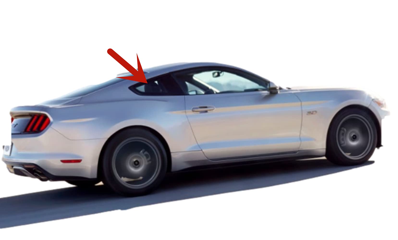 OE Passenger Right Side Quarter Window Quarter Glass Compatible with Ford Mustang 2 Door Coupe 2015-2022 Models Compatible Vehicles : 2015-2022 Mustang 2 Door Coupe Glass Detail : Original Equipment , Tempered Glass , Solar Controlled Glass Location : Right side , Behind/ Next to the door ( last window...