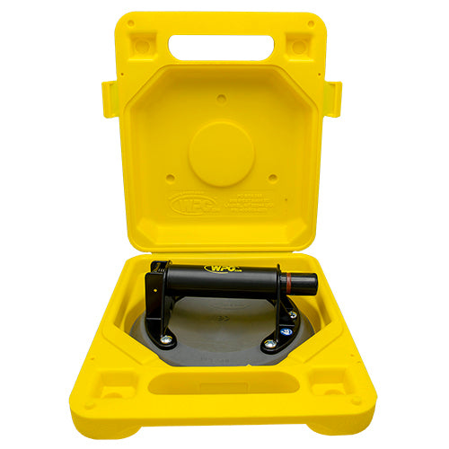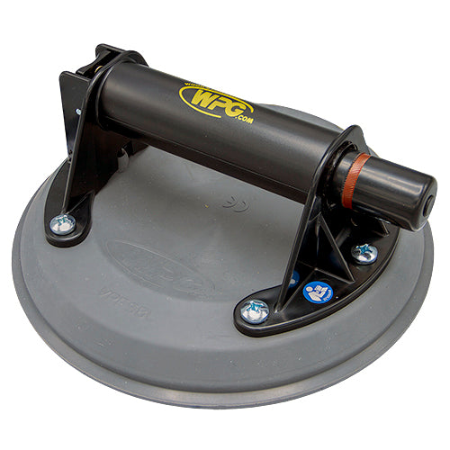 Specifically designed to lift without leaving any mark behind, this industrial-grade plastic-handle hand cup quickly attaches to flat surfaces up to 125 lbs [57 kg].